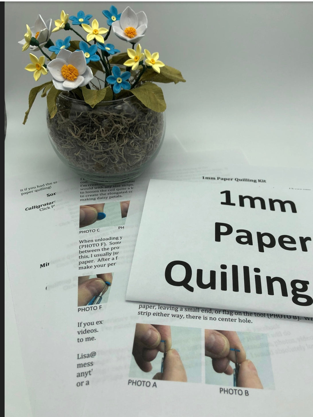 Welcome to The Paper Quilling Shop! This is your destination for 1mm paper quilling strips in the US, the tiny tool intended for these tiny strips and Live Zoom classes for beginners, and more experienced class for 1mm Strip Quilling. Please contact me with any questions. Lisa@ThePaperQuillingShop.com